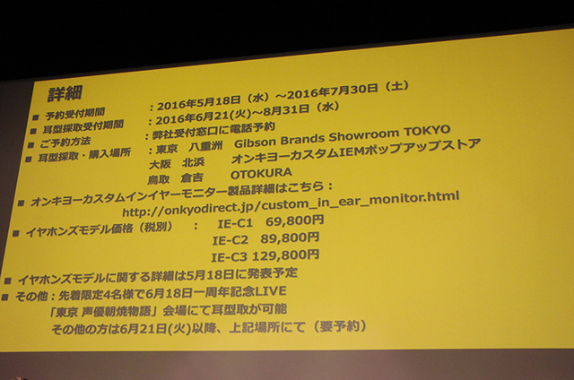 HOME > ニュース > AV&ホームシアターニュース 大槻ケンヂ氏と歌うゲームテーマ曲もハイレゾ配信 声優ユニット「イヤホンズ」コラボのオンキヨーカスタムIEMが限定発売 編集部:小澤 麻実 2016年04月20日 前の写真へ 次の写真へ 予約受付スタートは5月18日から 前の写真へ 次の写真へ この写真の記事へ 関連リンク 「BLADE - ブレイド 天から堕ちる千の刃 - 」公式サイト 「現象のブレイド」配信ページ