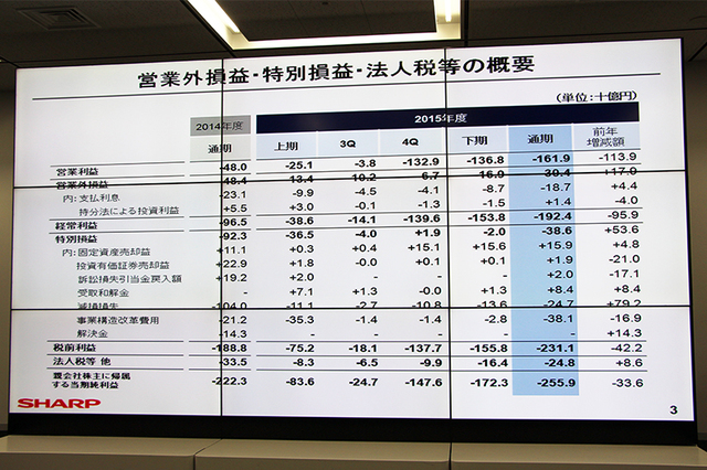 シャープ、'15年度は2,559億円の最終赤字。鴻海の戴副総裁が新社長に