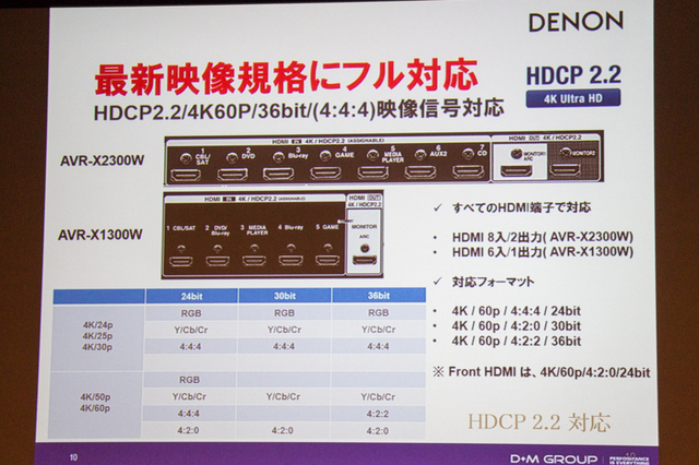 HOME > ニュース > AV&ホームシアターニュース デノンのHi-Fi技術と最新トレンド技術を融合 デノン、音質を追求したAVアンプ「AVR-X2300W/X1300W」。アトモス/DTS:Xに対応 編集部:小澤貴信 2016年05月17日 前の写真へ 次の写真へ 全HDMI端子がHDCP2.2に対応する 前の写真へ 次の写真へ この写真の記事へ 関連リンク デノン AVR-X2300Wの詳細(デノン) AVR-X1300Wの詳細(デノン)