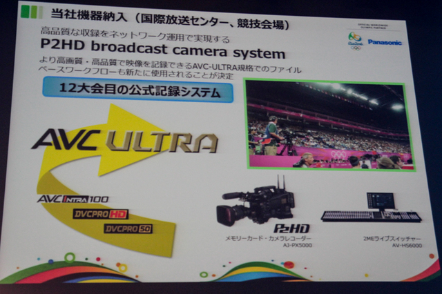 HOME > ニュース > AV&ホームシアターニュース リオ五輪での展開を紹介するプレスセミナーを開催 パナソニック、リオ五輪に過去最大規模のAVソリューション/放送機器を納入 編集部:小澤貴信 2016年05月19日 前の写真へ 次の写真へ AVC-ULTRA規格でのファイルベースワークフローも新たに採用されることが決定 前の写真へ 次の写真へ この写真の記事へ 関連リンク リオ五輪におけるAV機器ソリューション納入についてのプレスリリース リオ五輪に向けたマーケティング展開についてのプレスリリース パナソニック