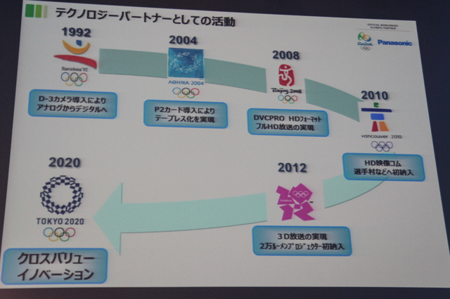 HOME > ニュース > AV&ホームシアターニュース リオ五輪での展開を紹介するプレスセミナーを開催 パナソニック、リオ五輪に過去最大規模のAVソリューション/放送機器を納入 編集部:小澤貴信 2016年05月19日 前の写真へ 次の写真へ オリンピックのテクノロジーパートナーとしての活動の歴史を紹介 前の写真へ 次の写真へ この写真の記事へ 関連リンク リオ五輪におけるAV機器ソリューション納入についてのプレスリリース リオ五輪に向けたマーケティング展開についてのプレスリリース パナソニック