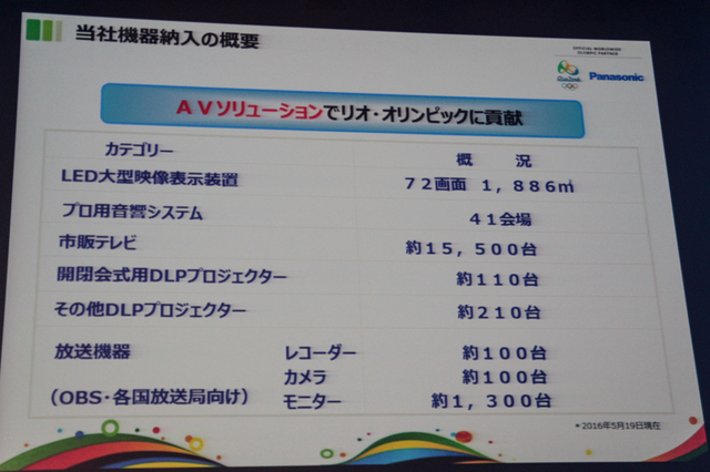 HOME > ニュース > AV&ホームシアターニュース リオ五輪での展開を紹介するプレスセミナーを開催 パナソニック、リオ五輪に過去最大規模のAVソリューション/放送機器を納入 編集部:小澤貴信 2016年05月19日 前の写真へ 次の写真へ パナソニックがオリンピックに納入するAVソリューション一覧 前の写真へ 次の写真へ この写真の記事へ 関連リンク リオ五輪におけるAV機器ソリューション納入についてのプレスリリース リオ五輪に向けたマーケティング展開についてのプレスリリース パナソニック