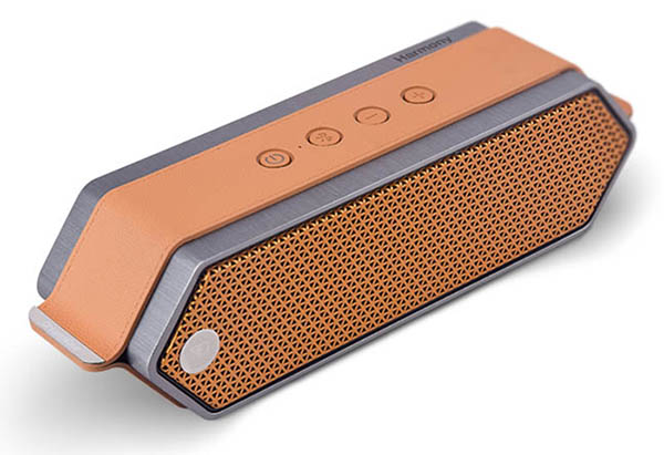 Bluetoothスピーカー「Harmony」。オレンジとブラックの2色展開