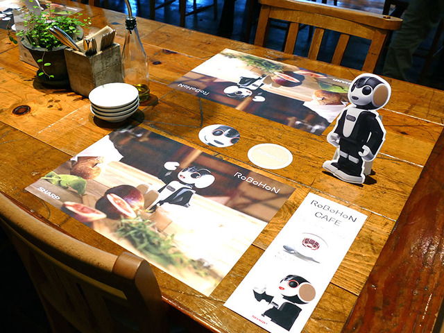 店内のようす。ロボホンのペーパーやコースターが敷かれるなど特別仕様になっている