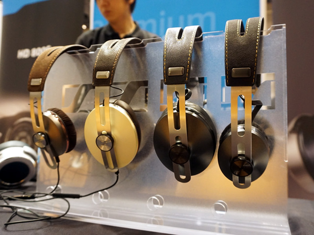 ゼンハイザーはMOMENTUMシリーズなどのヘッドホン/イヤホン各モデルや「HDVD800」などを試聴できるようにしていた