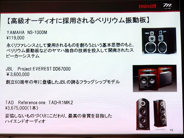 “マッハ36”ベリリウム振動板のメリットとは? マクセル、新ヘッドホン「MXH-MD5000」説明会