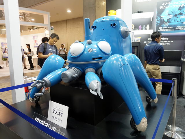 攻殻機動隊のタチコマを1/2サイズで実現させる「多脚ロボットプロジェクト」の展示。タチコマの機体の一部が3Dプリンターで作られている