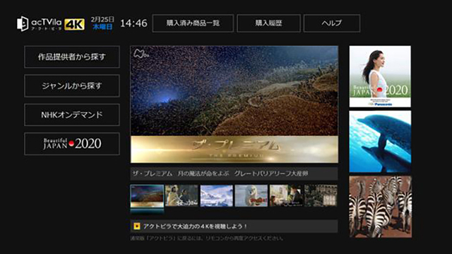 4K アクトビラの画面