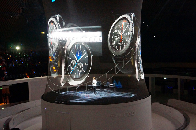 HOME > ニュース > AV&ホームシアターニュース バリエーションは2機種を用意 <IFA>サムスン、“アナログ腕時計”のようなルックスの新スマートウォッチ「Gear S3」 山本 敦 2016年09月01日 次の写真へ ベルリン市内の特設会場で、サムスンの新しいスマートウォッチ「Gear S3」の発表会が開催された 次の写真へ この写真の記事へ 関連リンク サムスン Phile-web「IFA 2016」関連記事一覧 IFA 2016 日本語サイト