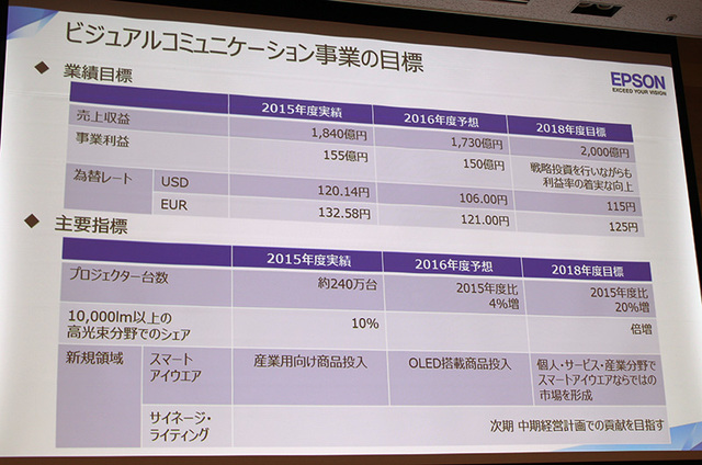 エプソン、'18年度のプロジェクター販売台数を'15年度比20%増へ
