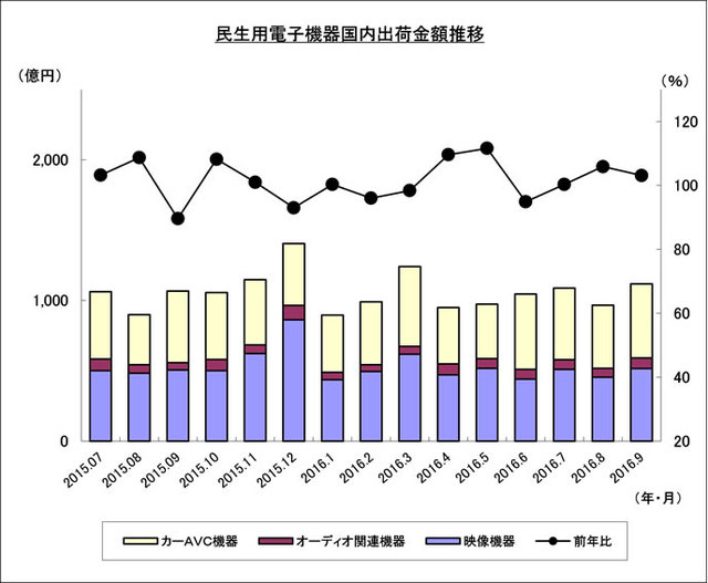 テレビなど民生用電子機器国内出荷は10ヶ月連続マイナス − JEITA発表
