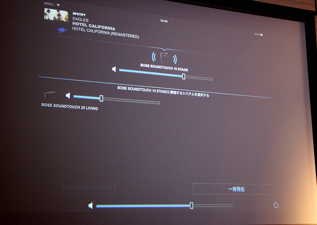 HOME > ニュース > AV&ホームシアターニュース アプリも連動 ボーズ、ワイヤレススピーカー「SoundTouch」にSpotify連携機能を追加 編集部:風間雄介 2016年11月01日 前の写真へ 次の写真へ 複数端末を同期して同じ楽曲を再生することが可能だ 前の写真へ 次の写真へ この写真の記事へ 関連リンク ボーズ SoundTouch 10 SoundTouch 20 series III SoundTouch 30 series II