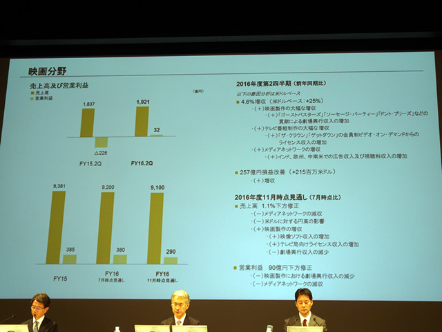映画分野は「ゴーストバスターズ」などのヒットもあって損益改善