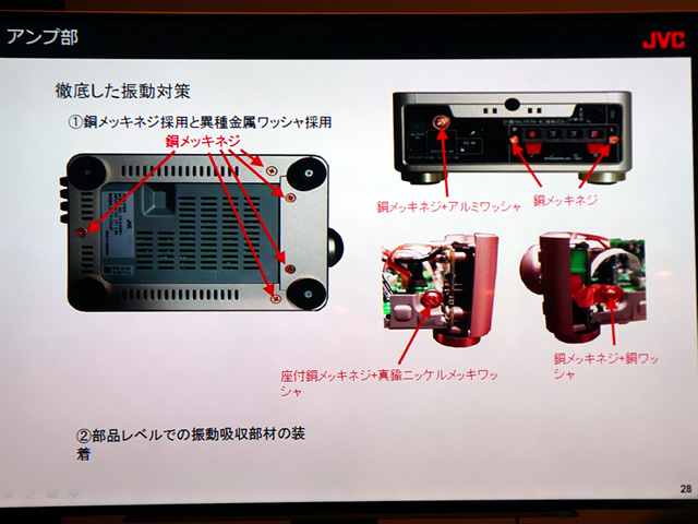 材質の異なるワッシャーを使い分けることで高音質化を図った