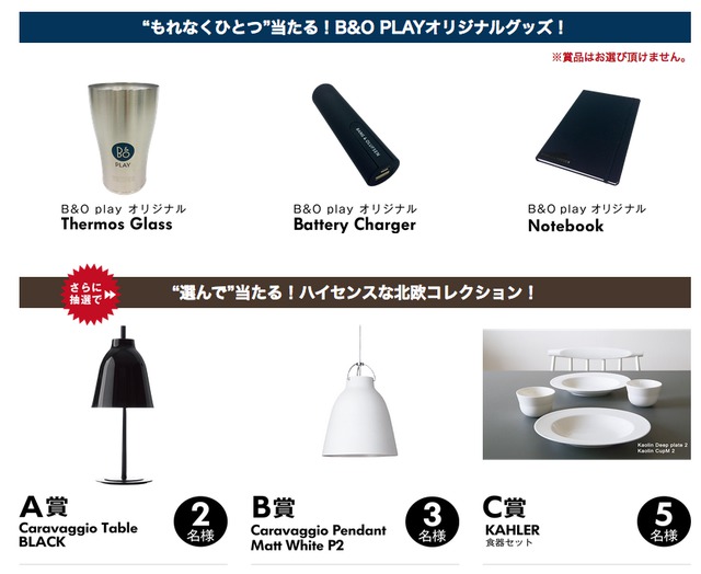 HOME > ニュース > AV&ホームシアターニュース Parrot「Zik3」の五千円キャッシュバックキャンペーンも B&O PLAY製品を買うとオリジナルグッズや北欧雑貨がもらえるプレゼントキャンペーン 編集部:小野佳希 2016年11月18日 前の写真へ 前の写真へ この写真の記事へ 関連リンク B&O PLAY Autumn Winter プレゼントキャンペーン Parrot「Zik3」キャッシュバックキャンペーン