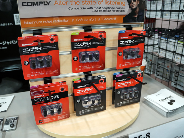 コンプライのイヤーチップ各種を展示