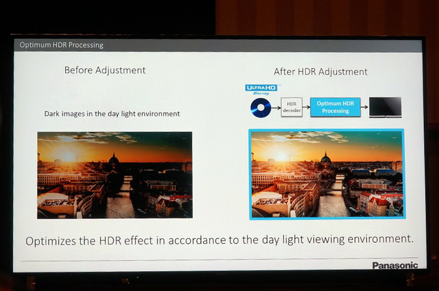 HOME > ニュース > AV&ホームシアターニュース ディテールをより正確に表現 <CES>パナソニック入門UHD BDプレーヤー詳報。小型化、HDR輝度調整機能など搭載 折原一也 2017年01月05日 前の写真へ 次の写真へ 「Optimum HDR Processing」の概要 前の写真へ 次の写真へ この写真の記事へ 関連リンク 2017 International CES 2017 International CES レポート記事一覧