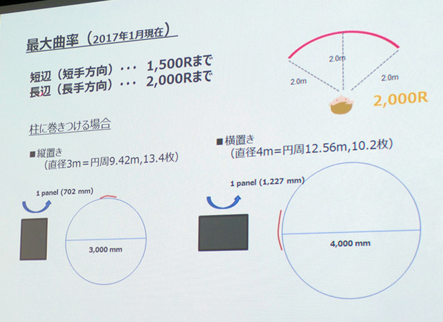 HOME > ニュース > AV&ホームシアターニュース 本日、製品発表会を開催 LG、有機ELデジタルサイネージ 3製品を日本市場に投入 ー 液晶にはない長所で新しい展示を訴求 編集部:川田菜月 2017年02月02日 前の写真へ 次の写真へ 今年中に最大曲率は短辺1500Rまでを1000Rに、長辺2000Rまでを1500Rに改善するとのこと 前の写真へ 次の写真へ この写真の記事へ 関連リンク デジタルサイネージ製品情報 LGエレクトロニクス