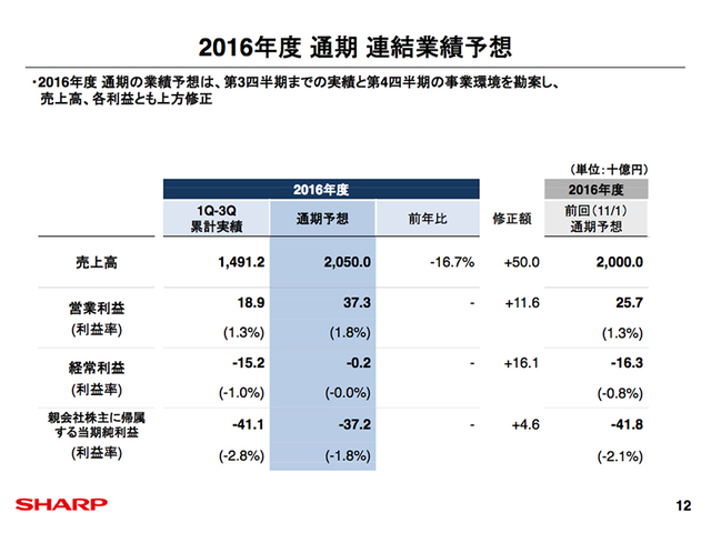 シャープ、3Q黒字で通期業績予想を上方修正。構造改革から“反転攻勢”へ
