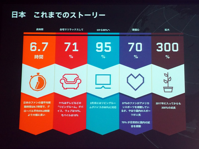 現状ではテレビなどを通じてリビングなどでの利用が多いとのことだが今回の新サービスでモバイル利用が高まるだろうと説明