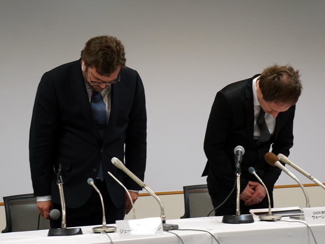 HOME > ニュース > AV&ホームシアターニュース ジェームズCEOと開発部長、Jリーグ村井チェアマンが登壇 DAZN、Jリーグ中継不具合で緊急会見。補償として2週間の無料期間提供 編集部:小野佳希 2017年03月02日 次の写真へ 会見冒頭で頭を下げ謝罪するジェームズCEOら 次の写真へ この写真の記事へ 関連リンク DAZN(ダ・ゾーン) Jリーグ