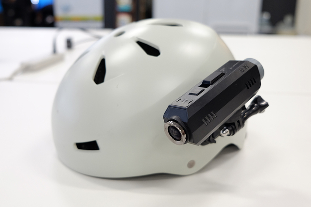 ヘルメットにREC-1を装着した様子
