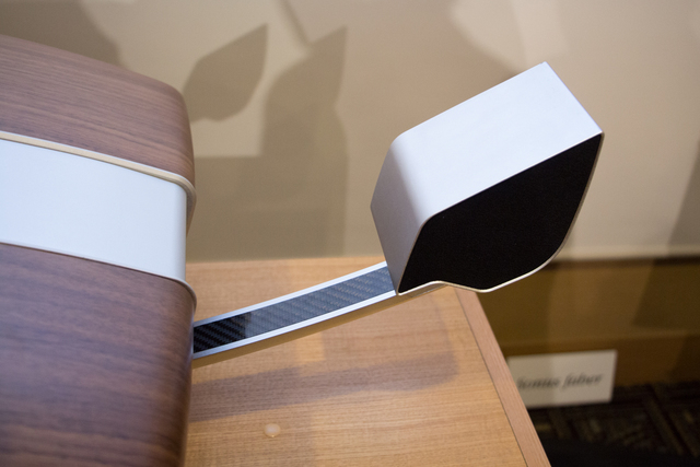 サテライトスピーカーのアームは非常に強固。カーボンが用いられているのが見て取れる