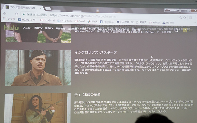 写真は「カンヌ映画祭受賞作特集」。コメントはスタッフの手書きだという