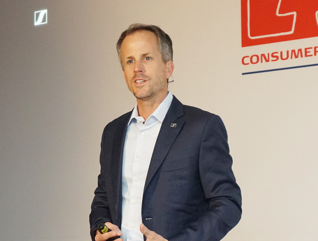 CEOのアンドレアス・ゼンハイザー氏がIFA GPCの壇上でAMBEOの新製品、今後の展開について語った