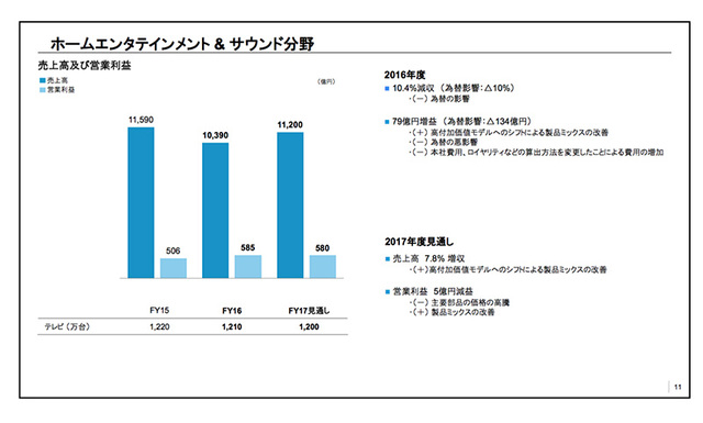 ソニーの'16年度業績は減収減益。来期は一転、営業利益5,000億円へ