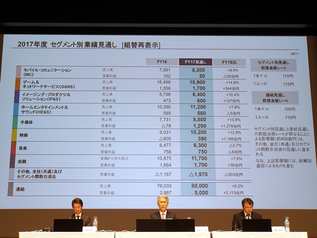 ソニーの'16年度業績は減収減益。来期は一転、営業利益5,000億円へ