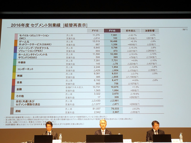 ソニーの'16年度業績は減収減益。来期は一転、営業利益5,000億円へ
