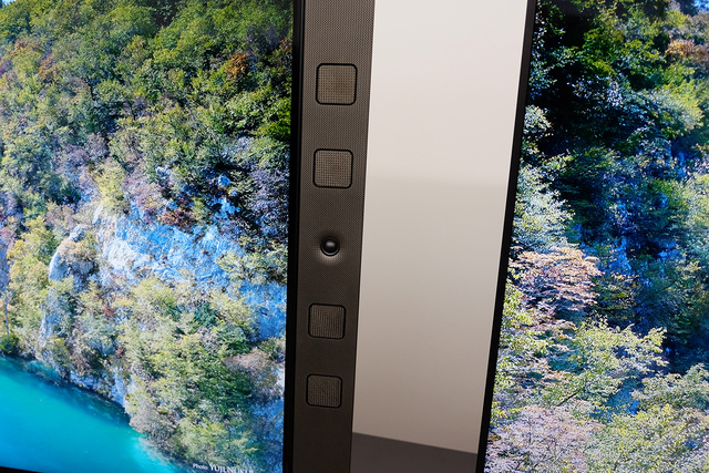 「X9500E」シリーズはサイドスピーカーを搭載するが、スペースに配慮したスリムなデザインとなる(左)