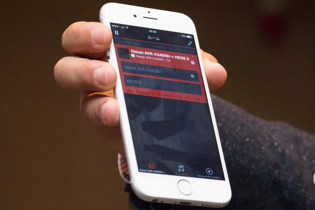実際にHEOS Appを使って、AVR-X2400HとHEOS 3の連携をデモ