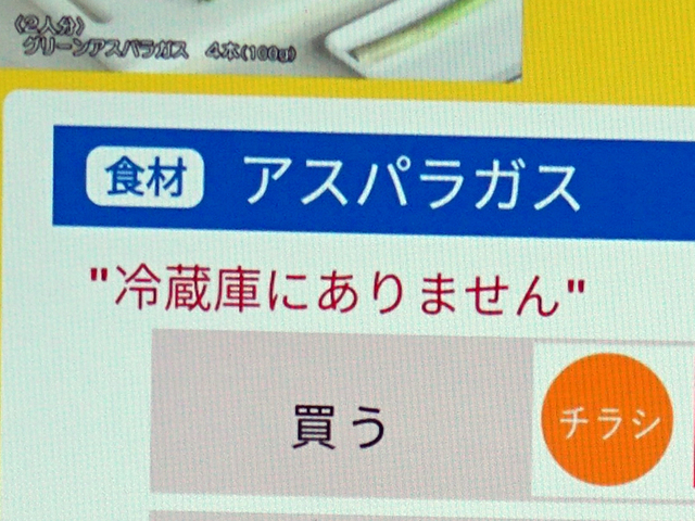番組で紹介されているレシピに必要な食材が冷蔵庫にあるかどうかを通知