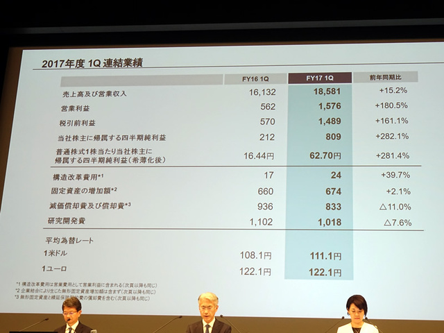 ソニー、17年1Qは営業利益1,576億円。有機ELも好調、高付加価値シフト奏功