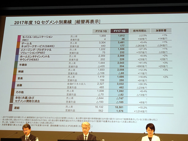 ソニー、17年1Qは営業利益1,576億円。有機ELも好調、高付加価値シフト奏功