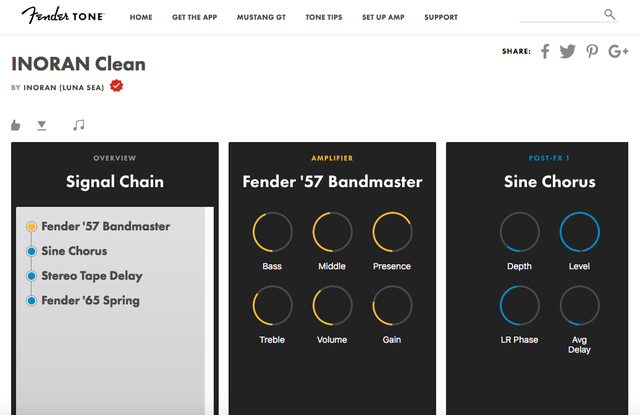 FENDER TONEには国内アーティストが作成したプリセットも用意。こちらはINORANさんのプリセット