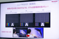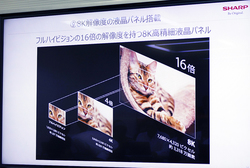 HOME > ニュース > AV&ホームシアターニュース 中国・台湾・欧州でも 【詳細追加】シャープ、世界初の8Kテレビ「AQUOS 8K」。日本で12月発売、100万円前後 ファイルウェブ編集部 2017年08月31日 前の写真へ 次の写真へ 8Kはフルハイビジョンの16倍の解像度 前の写真へ 次の写真へ この写真の記事へ 関連リンク シャープ8K特設サイト シャープ