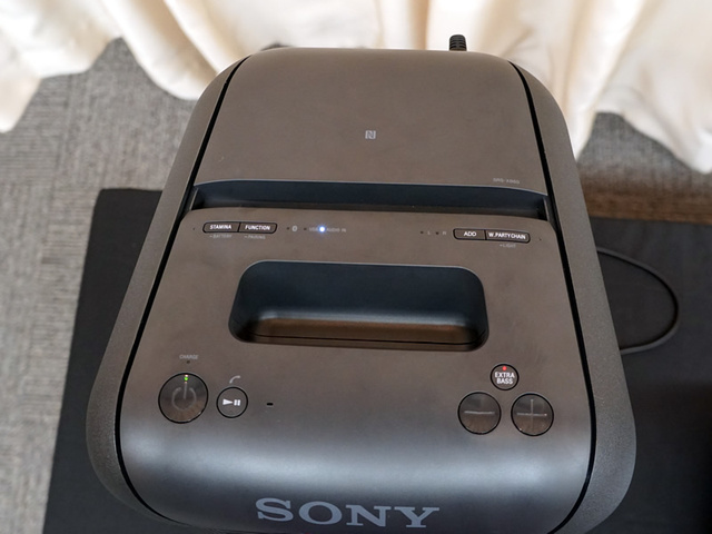 HOME > ニュース > AV&ホームシアターニュース バッテリー内蔵/マイク接続も可能 ソニー、音楽にあわせて光る低音重視“EXTRA BASS”の大型ワイヤレススピーカー「SRS-XB60」 編集部:小野佳希 2017年09月12日 前の写真へ 天面の各種ボタン類 前の写真へ この写真の記事へ 関連リンク EXTRA BASS 特設サイト ソニー