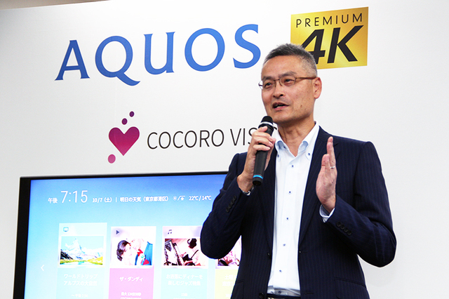 HOME > ニュース > AV&ホームシアターニュース COCORO VISIONに対応 シャープ、Android TV採用で “AIoT対応” の4K AQUOS「UH5」「US5」 ファイルウェブ編集部 2017年09月28日 前の写真へ 次の写真へ TVシステム事業本部・副事業本部長の喜多村 和洋氏 前の写真へ 次の写真へ この写真の記事へ 関連リンク シャープ AQUOS シャープ