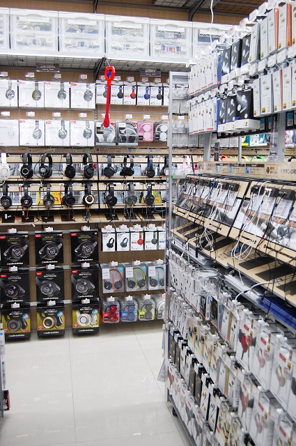 2階のスマートフォンコーナーに隣接するオーディオコーナーでは、人気上昇中のワイヤレスイヤホンをはじめヘッドホン・イヤホンを充実