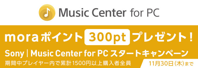 HOME > ニュース > AV&ホームシアターニュース 1,500円以上購入者全員に mora、「Sony | Music Center for PC」からの楽曲購入で300ポイントプレゼント 編集部:伊藤 麻衣 2017年10月11日 この写真の記事へ 関連リンク キャンペーン特設ページ mora
