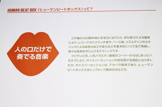 ヒューマンビートボックスは口だけで音楽演奏をするというもの