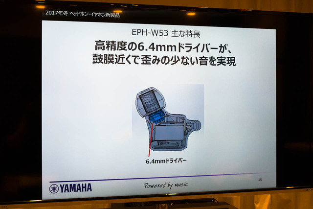 ヤマハ、ケーブル一体型Bluetoothイヤホン「EPH-W53」。鼓膜近くにドライバー配置