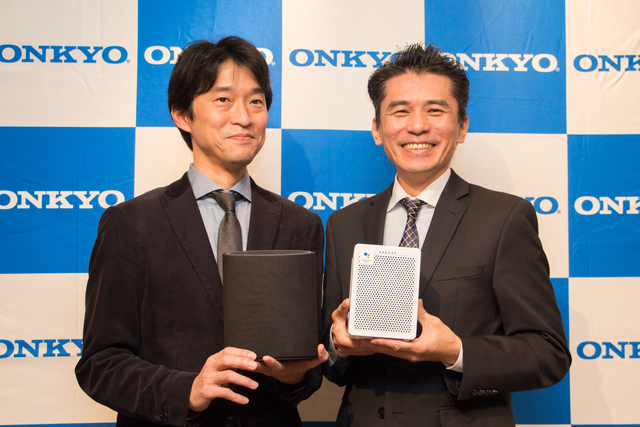 オンキヨー&パイオニア マーケティングジャパンの荒木健社長(左)とオンキヨーのAI/IoT事業戦略室の宮崎武雄氏(右)がプレゼンを行った