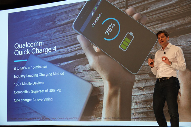 15分の充電でバッテリーゼロから50%まで急速に充電できる「Qalcomm Quick Charge 4」はSnapdragon 845シリーズのフィーチャーとしても含まれている