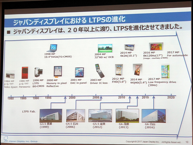JDIは20年以上にわたってLTPSを進化させてきたことをアピール