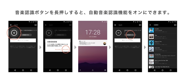 HOME > ニュース > AV&ホームシアターニュース Android版に提供される機能 AWAが周囲に流れる曲を自動で特定、音楽認識機能を強化 編集部:押野 由宇 2018年01月31日 次の写真へ 使用方法イメージ 次の写真へ この写真の記事へ 関連リンク 「音楽認識機能」の詳細 AWA