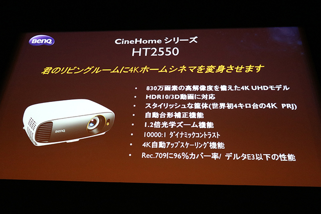 BenQ、20万円を切る4K/HDRプロジェクター「HT2550」発表会。「ゲームチェンジャーになり得るモデル」